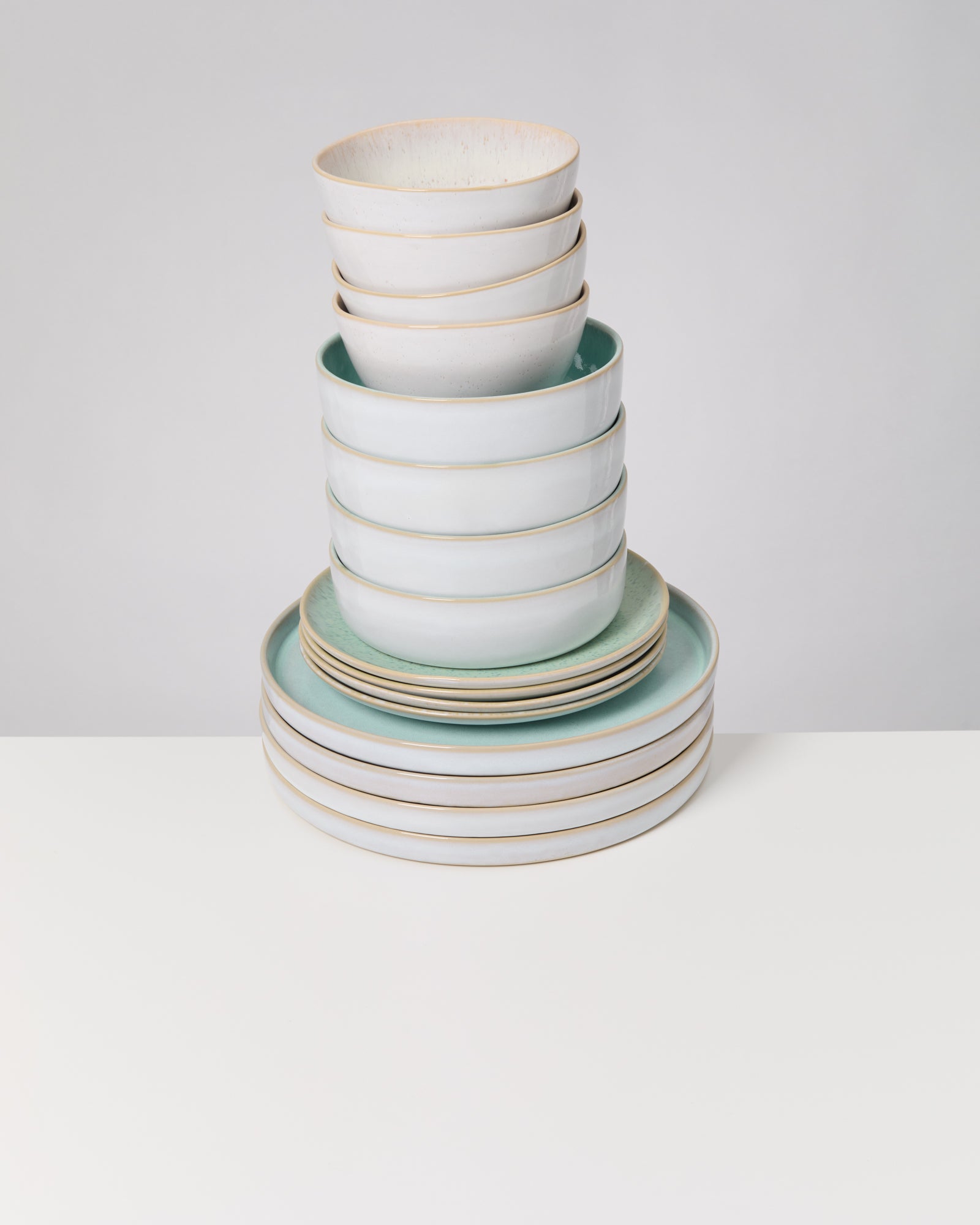 Unser Mint Harmony Geschirrset erstrahlt in frischen, harmonischen Farben und bringt die Leichtigkeit des Frühlings auf deinen Tisch.