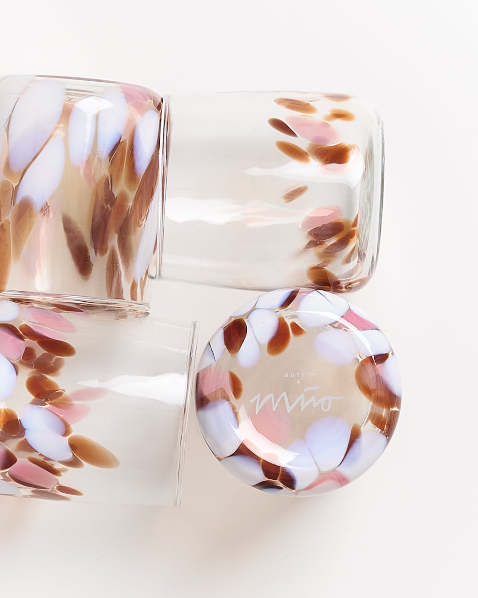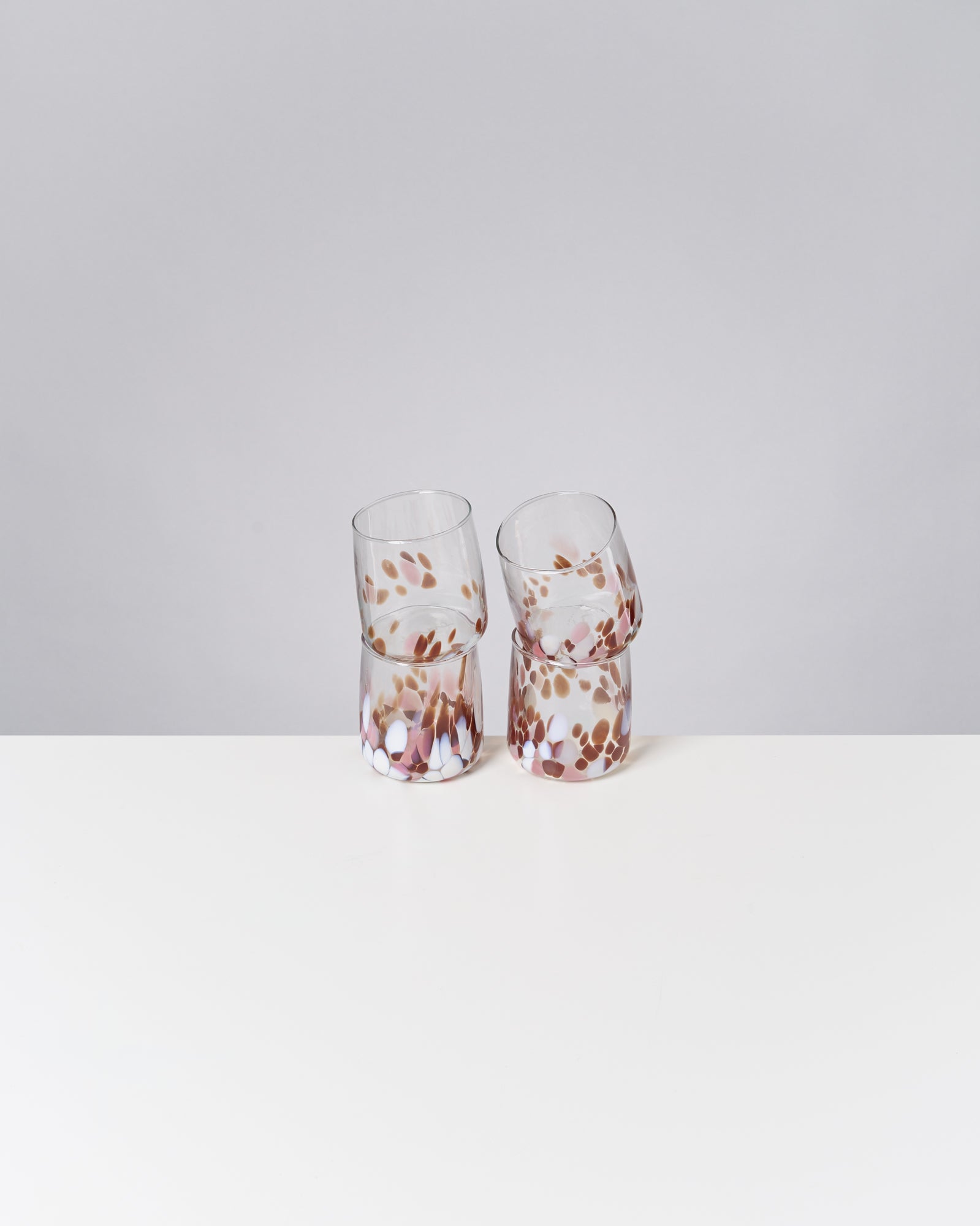 Alegria set of 4 glasses small big drops amber pink