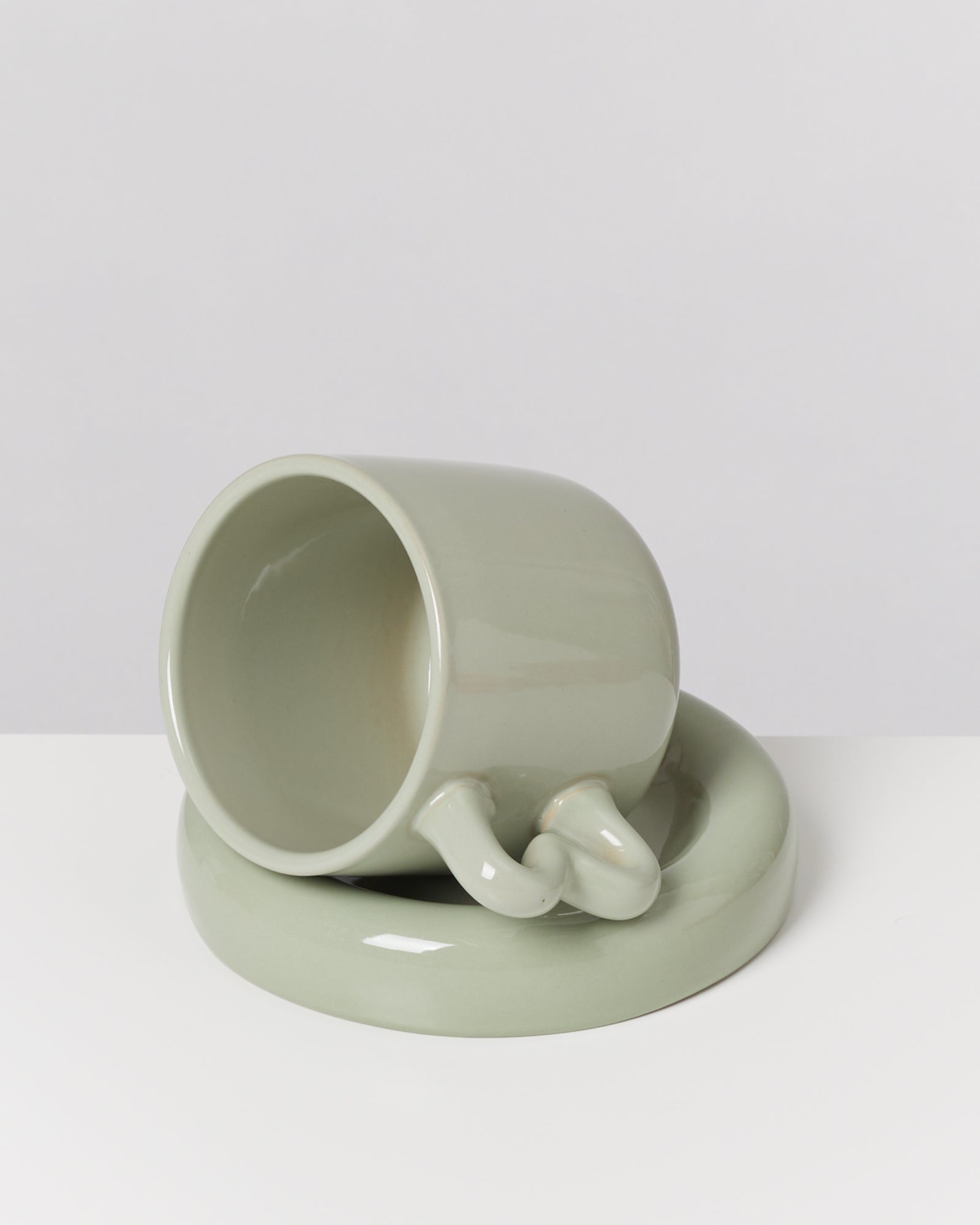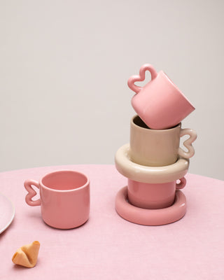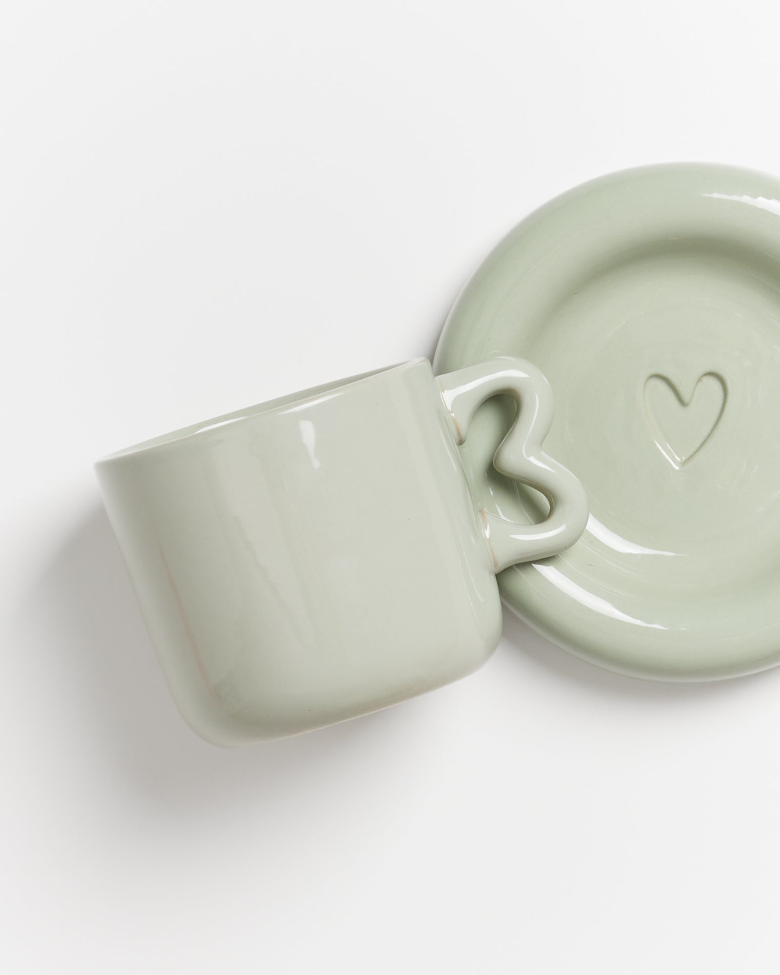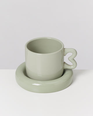 Seia - Tazza e piattino con cuore verde salvia