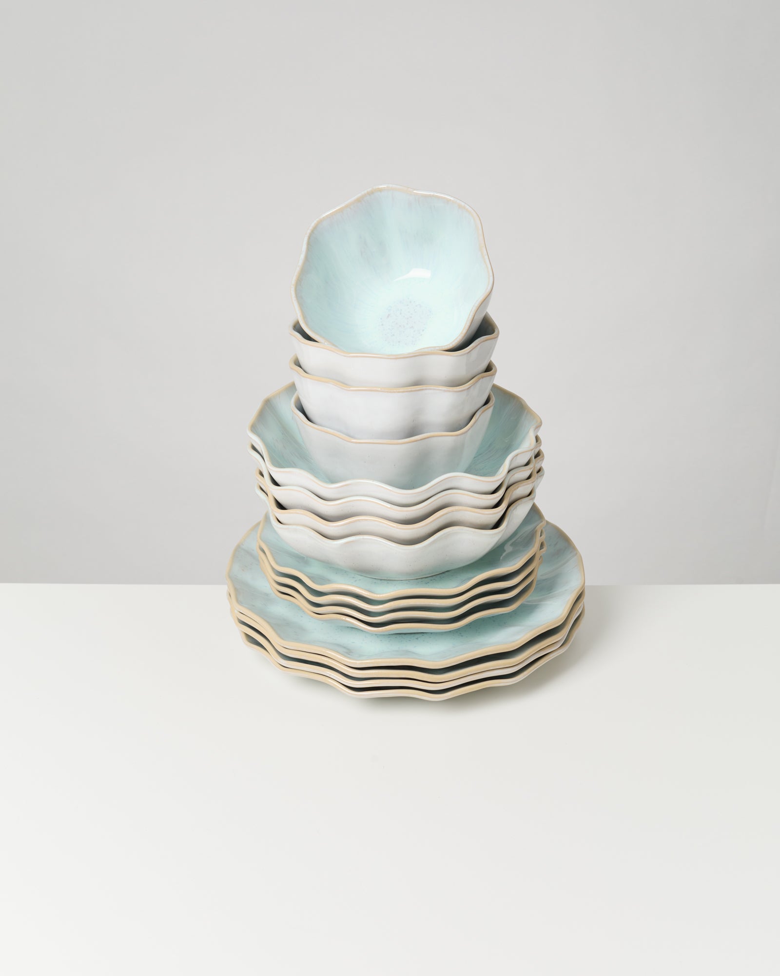 Voor een vleugje zomer op tafel - zet stijlvolle accenten met onze Areia Shell collectie in azuurblauw. De 16-delige serviesset bestaat uit: