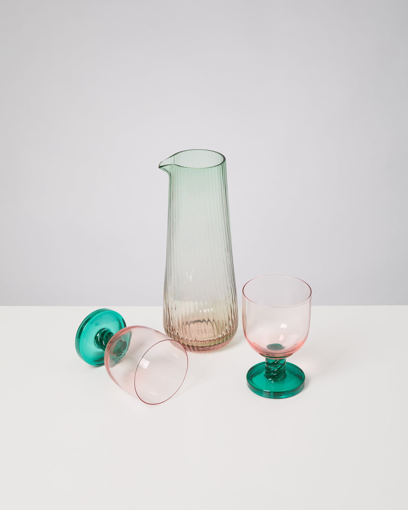 Pinguim Glaskaraffe riffled grün rosé