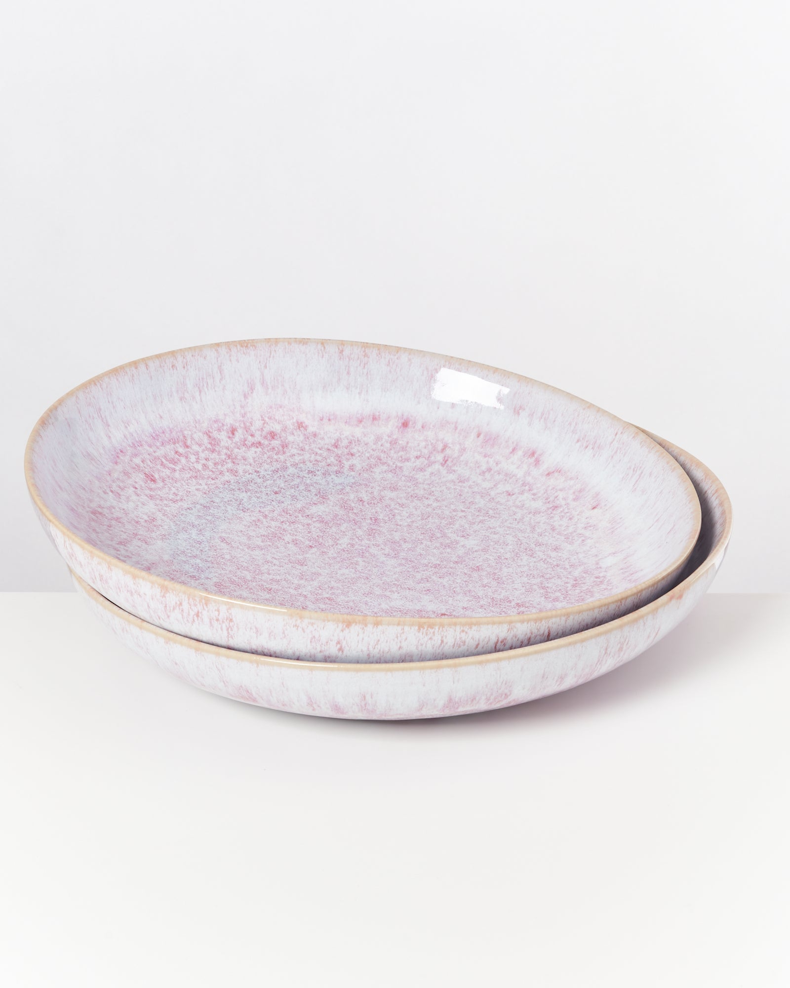 Ideal zum Servieren von Salaten, Pasta & Co.: unsere flache Servierschale im wunderschönen rose Farbverlauf.